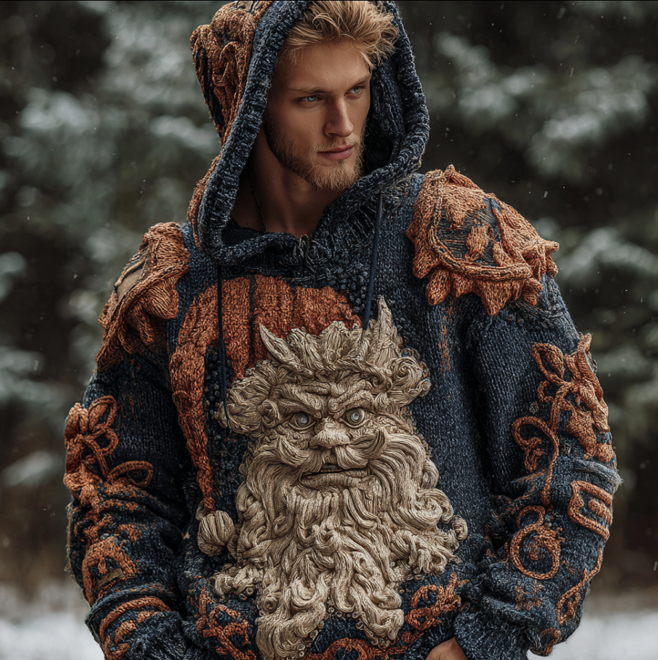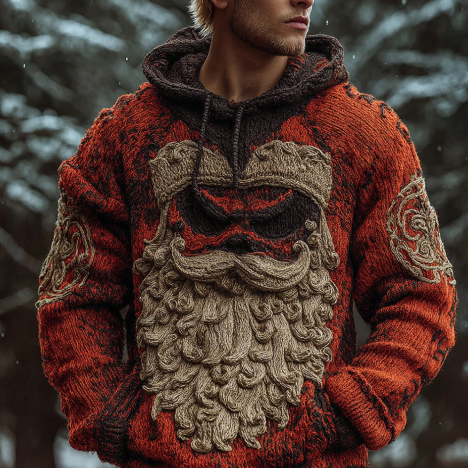 Halloween Viking Grotesque Santa Claus Men's Knit Hooded Sweater