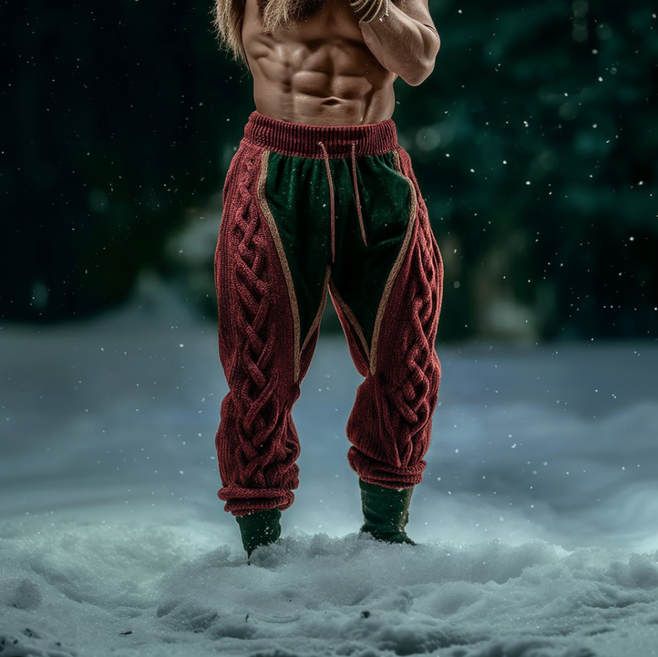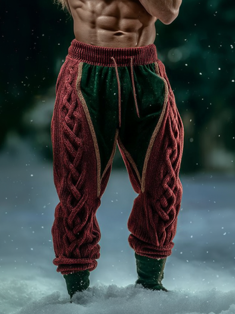 Christmas Vintage Viking Color-blocked Men's Knitted Long Pants
